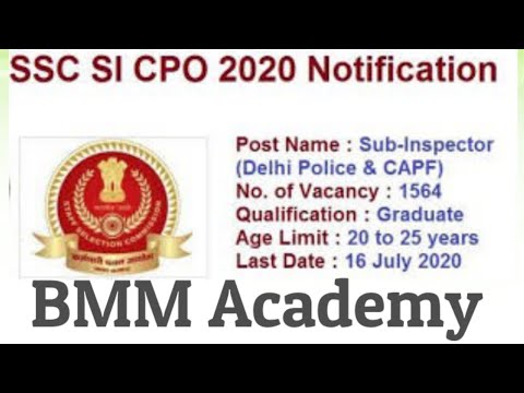 SSC CAPF SI Recruitment 2020 - SSC SI in Delhi Police CPO Recruitment 2020